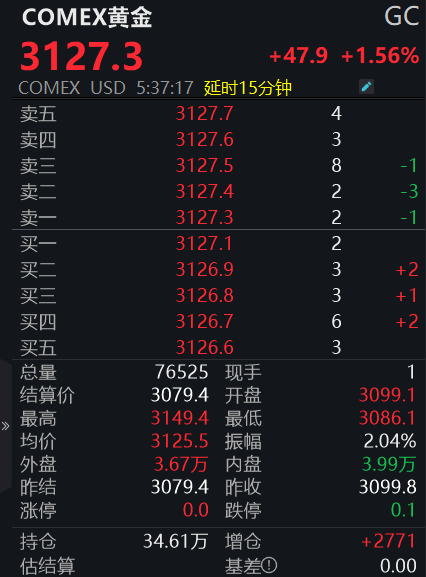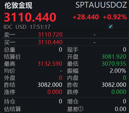 截至记者发稿,伦敦金现和COMEX黄金期货均已站上3100美元/盎司关口。